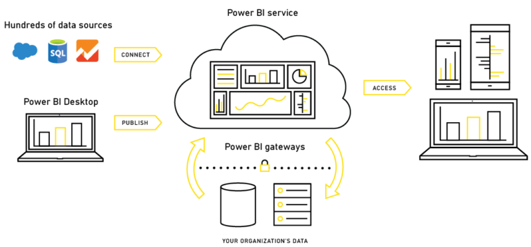 Microsoft Power BI es una solución de inteligencia empresarial que permite absorber información de diferentes orígenes de datos, analizarla, procesarla y posteriormente presentarla mediante intuitivos paneles o informes a los usuarios.